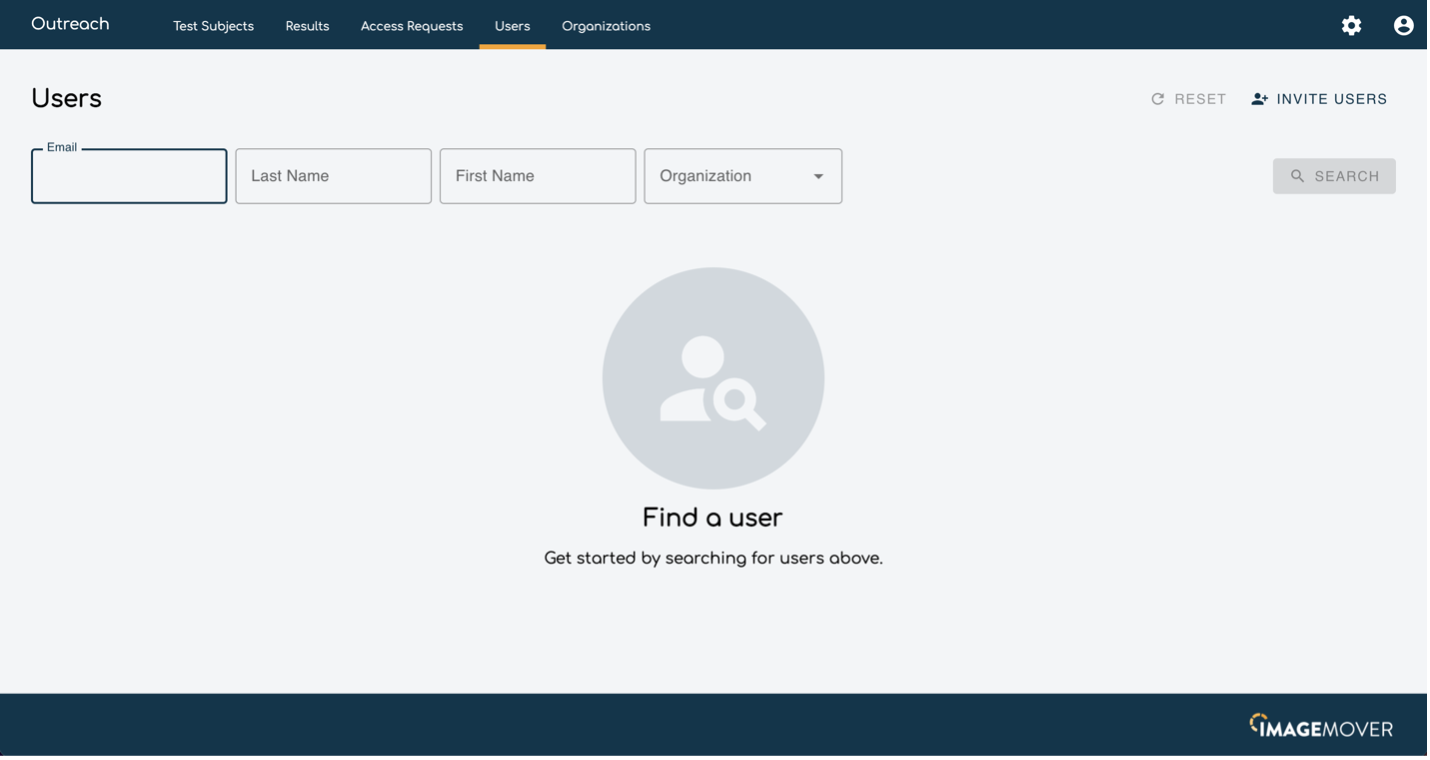 To access your organization's web portal, navigate to organization.imagemovermd.com. The specific URL is enclosed in your welcome email from ImageMover. If you have lost it, reach out to support@imagemovermd.com for assistance. You will login with the same credentials used in the mobile application